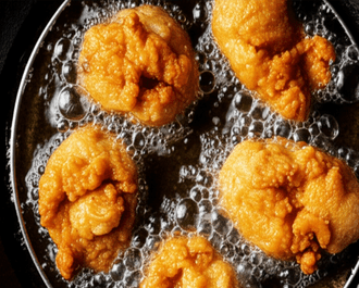 deep pan or kadhai, enough for the chicken pieces to be partially submerged. Heat the oil over medium-high heat. The ideal temperature for frying chicken is around 325-350°F (160-175°C). If you don't have a thermometer, test with a small piece of bread; it should turn golden brown in about 30-60 seconds.